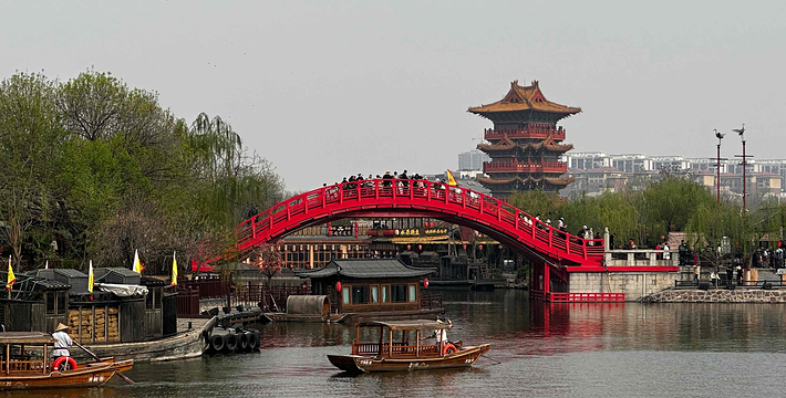 清明上河园,是以宋代张择端的名画《清明上河图》为蓝本,以北宋都城汴梁(现名开封)的市井生活和古代娱乐为题材的仿古文化主题公园。园内分为三部分:迎宾广场、北苑和南苑,再现了繁华的汴京城,是活生生的《清明上河图》。