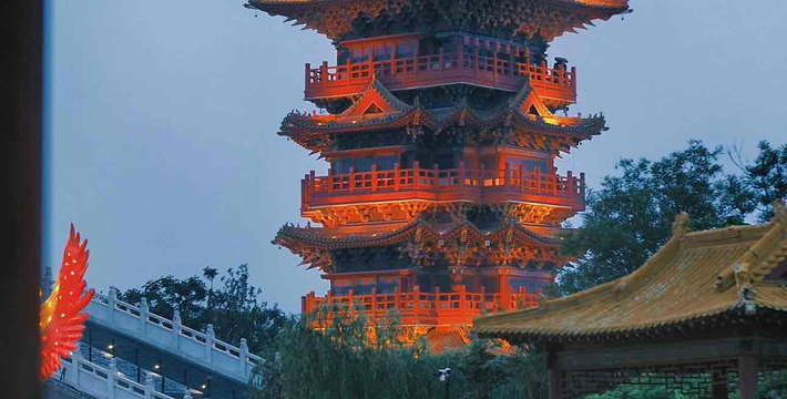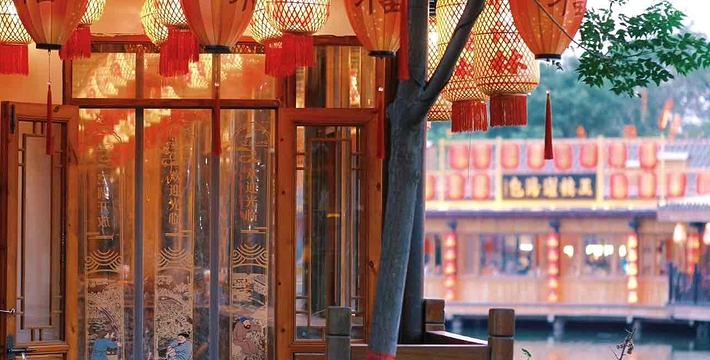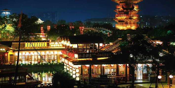 在这里你将置身于一个庞大的仿宋古建筑群中。进入园中会看到拂云阁、虹桥、水心榭、双亭桥、九龙桥等一批北宋时期开封知名的建筑,此外还有酒楼、茶肆、当铺等平民生活设施。而园中的工作人员、小商小贩们,都身穿宋朝的服饰。这些都会让你产生错觉:一脚踏入了北宋时代的东京汴梁。另外还可以带着小朋友去“趣园”、“大宋游艺”等处,玩一玩投镖、射箭爬绳、钻圈等,体验一下宋朝游戏的乐趣。