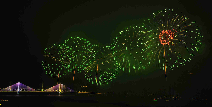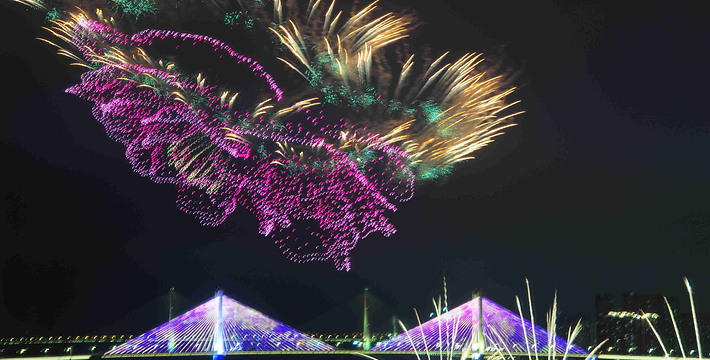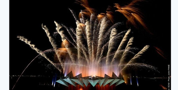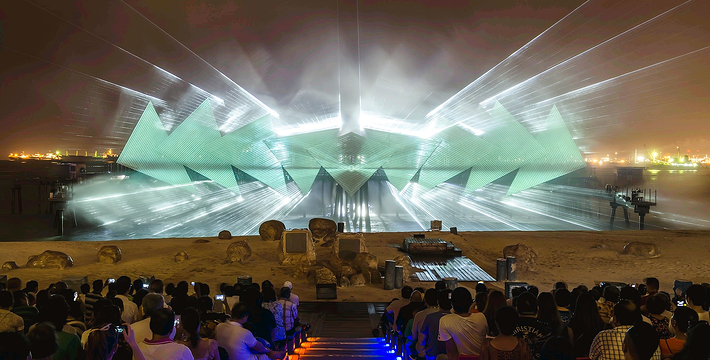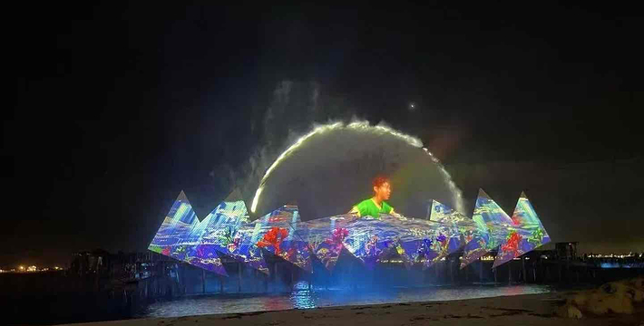 “海之颂”。它以歌乐与戏剧形式,结合烟火、水射、激光的特别效果,把观众引入如幻如真的神奇世界中,整场表演完全与海景天幕自然环境融合在一起,仿佛奔赴一场震撼人心的视觉盛宴,观众在海连天的夜幕中欣赏表演,完全没有距离。 。每天傍晚,圣淘沙的海之颂音乐喷泉便会海滩上展开缤纷夺目的焰火、喷水和激光效果的精彩表演。其中还包括了阵容坚强的歌手。 这个项目是由伊万潘平(Yves Pepin)设计,以取代前25年的圣淘沙魔法表演。