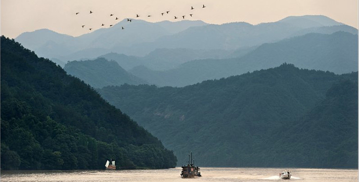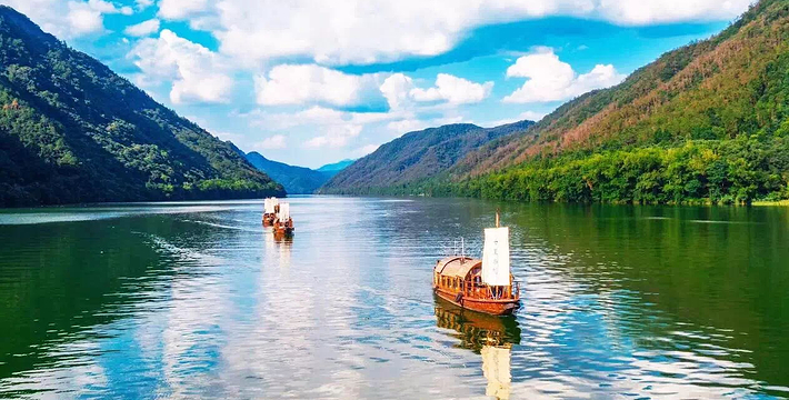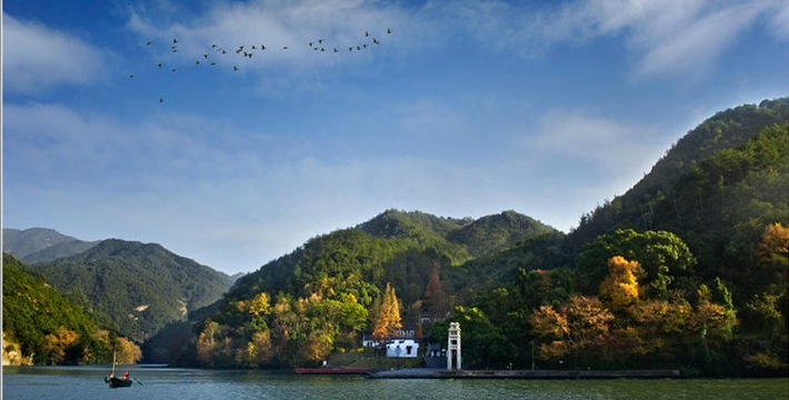 桐庐七里扬帆位于桐君山至渡济一带江面,全长7公里,行程约一个半小时。"山峡明镜中,帆浮翠屏间。"作为历史上著名的"严陵八景"之一的富春江七里扬帆这一绝妙景观,在消失30余年后,于1999年重新成为一项富春江特色旅游项目并重现昔日风采。