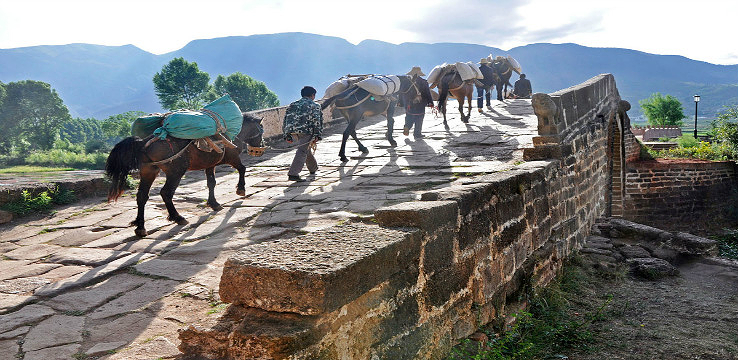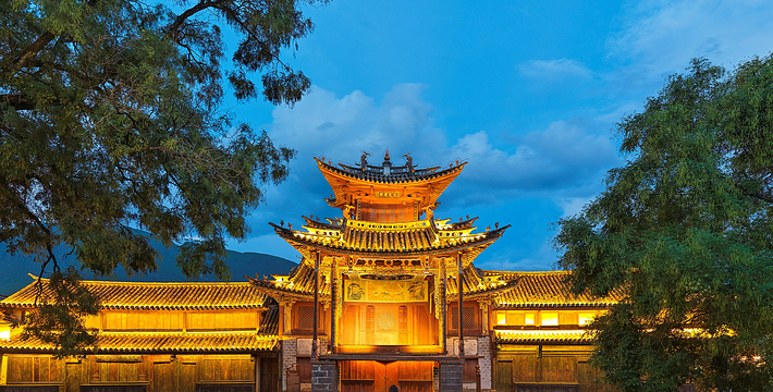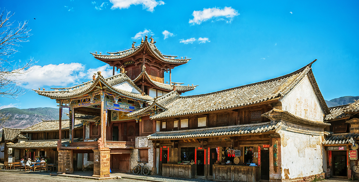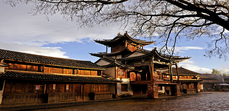 沙溪古镇位于云南省剑川西南部,古镇古朴、安静而精致。漫步古街红砂石板,登上古戏台,看一看四方街铺面和马店,走一走黑潓江上玉津桥,到兴教寺感受各种流派佛教合而为一的寺庙,听一听沙溪洞经古乐,体会古老民族的古音乐的韵味,看一次白族传统的霸王鞭,跳一曲白族传统的肖拉者舞,听沙溪姑娘唱一曲白族调,尝一尝沙溪土特产地参子、松茸、羊乳饼,我们为茶马古道上能保存下一个完整的古集市而庆幸。