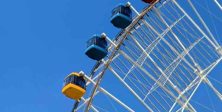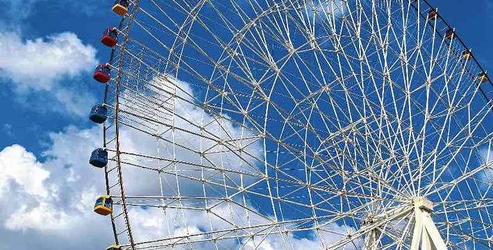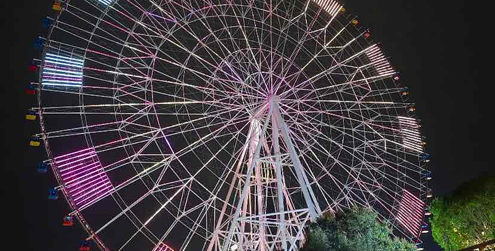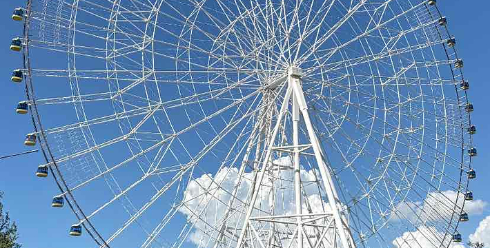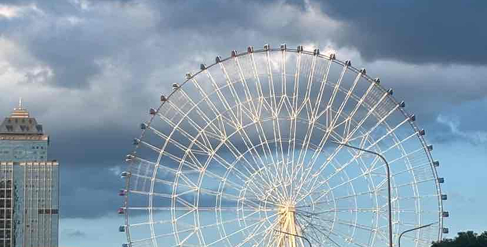 “南昌之星”摩天轮,又名南昌之星,位于江西省南昌市红谷滩新区红角洲赣江边上的赣江市民公园。高160米,同时在世界上仅次于新加坡飞行者(165米)的摩天轮,为南昌市标志性建筑。“南昌之星”摩天轮由国家煤科研究总院上海分院设计,轮面彩灯由六七千根LED半导体照明器件构成,全部亮灯后除了可以显示一座直径为153米的巨型彩色时钟,还可根据需要设定不同图案,建筑动工于2005年,于2006年竣工,投资总额达1亿元人民币。成为南昌的重要地标之一。“南昌之星”摩天轮位于江西省南昌市红谷滩新区红角洲赣江边上的赣江市民公园,是世界上第二高的摩天轮(”,高165米,超过了南昌之星摩天轮),南昌市标志性建筑。 该摩天轮总高程为160米,转盘直径为153米,比位于英国泰晤士河边的135米高的“伦敦之眼”摩天轮还要高。它设有60个太空舱,每舱可容游客6—8人,舱内配置了液晶电视、三菱冷暖空调,每小时将可容纳近千人“空中”旋转看南昌一江两岸的壮丽景观。60个太空舱分别代表60分钟的时间刻度,摩天轮将采用双供电与双动力系统,以保证游客安全,同时太空舱内还设有灭火器、对讲机及救生绳筒,万一出现故障,游客可沿绳而下,避免危险。摩天轮运转为匀速转动,但如有乘客在太空舱突发疾病,如心脏病等,通过对讲机与地面操作控制人员联系,可以调节运输速度,使病人快速抵达地面。