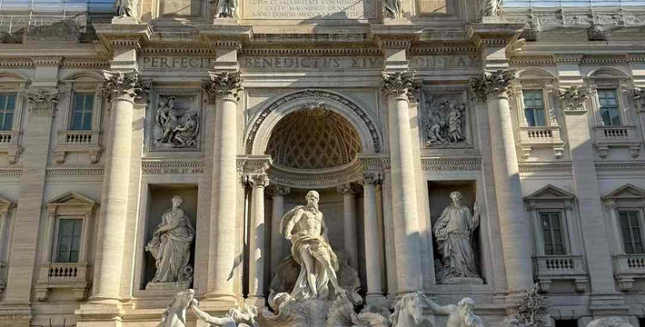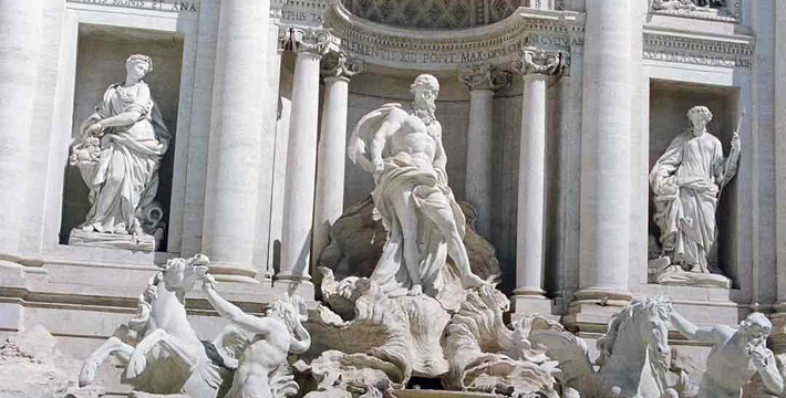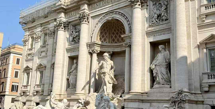 电影「罗马假期」之赐,许愿池(Fontana di Trevi)闻名世界。它是力量的象征,罗马人有一个美丽的传说,只要背对喷泉从肩以上抛一枚硬币到水池里,就有机会再次访问罗马。很多旅游者在喷泉边排着队往里抛硬币就是被这座城市迷住了的证明。喷泉的名字特雷维是三岔路的意思,因为喷泉前面有三条道路向外延伸,也正是喷泉名字的由来。喷泉由在教皇克雷芒十二世主办的喷泉大奖赛中得胜的尼科洛·萨尔维设计,巧妙地用借景手法将背后的宫殿借来,使得海神尼普顿和特里托内充满生气。1762年完成。通往喷泉的道路很窄,比较难分辨。