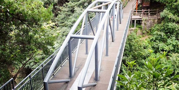 后花园:从迷魂台东行500多米,见一小石门,浑圆双拱似月亮。过此门,右面绝壁上有一凹台。立台俯视,见幽谷林木繁茂,芳草丛生,数十座玲找小巧的石峰,点缀在繁花绿叶中,百鸟啼啼,溪流混混,似一座巨大的花园。阳光直射溪谷时,石峰凝绿染丹,清新悦目。雨天则云雾如海,峰顶飘摇。此景位处森林公园边缘,为别于黄狮寨之“前花园”,故称“后花园”。