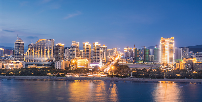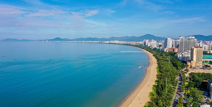 三亚湾度假区东起三亚港,二十里长的滨海大道依湾绵延,椰树成林西行延伸至天涯湾。人道十里银滩美,可比起这二十里椰林画廊,就大巫见小巫了!放眼望去,东、西玳瑁洲(玳瑁岛)(俗称东岛、西岛)两座小岛浮于海中,相邻而望,东岛驻军戒备森严,西岛渔家出入自由,相邻的小岛承担的却是不同的使命。紧挨三亚市区,绵延22公里。