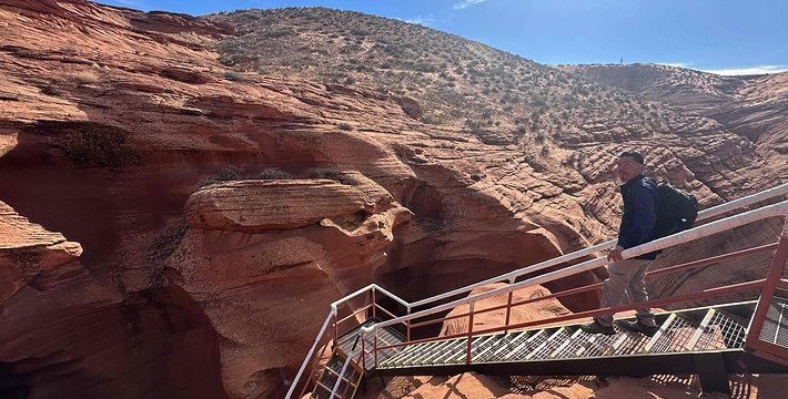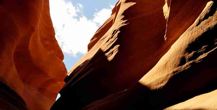 羚羊峡谷如同其他狭缝型峡谷般,是柔软的砂岩经过百万年的各种侵蚀力所形成。主要是暴洪的侵蚀,其次则是风蚀。该地在季风季节里常出现暴洪流入峡谷中,由于突然暴增的雨量,造成暴洪的流速相当快,加上狭窄通道将河道缩小,因此垂直侵蚀力也相对变大,形成了羚羊峡谷底部的走廊,以及谷壁上坚硬光滑、如同流水般的边缘。 大峡谷的形成并不仅靠科罗拉多河的水流。高原暴雨导致的山洪暴发。越是干旱的荒山,一旦暴雨,山洪暴发的力量就越是惊人。极度干燥坚硬的地表吸水性很差,降雨顺地势冲刷,如果地表有些许裂隙,湍急的水流和携带着一路冲下的砂石几乎无坚不摧,日积月累,就能将地貌天翻地覆。