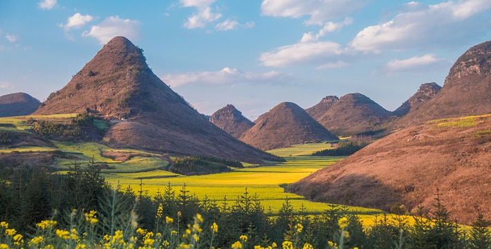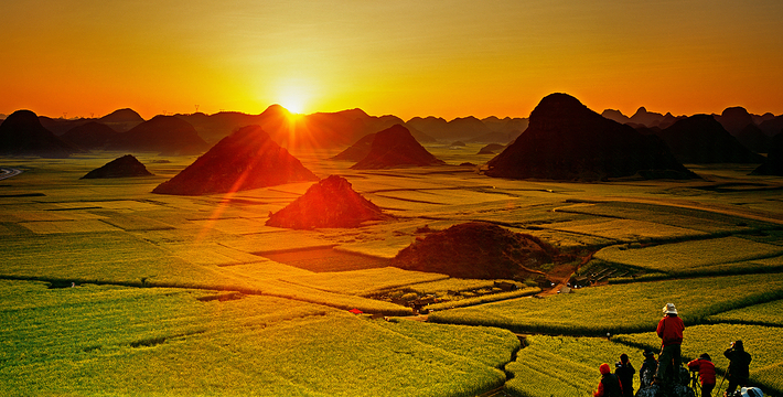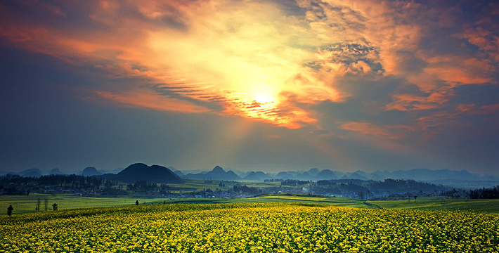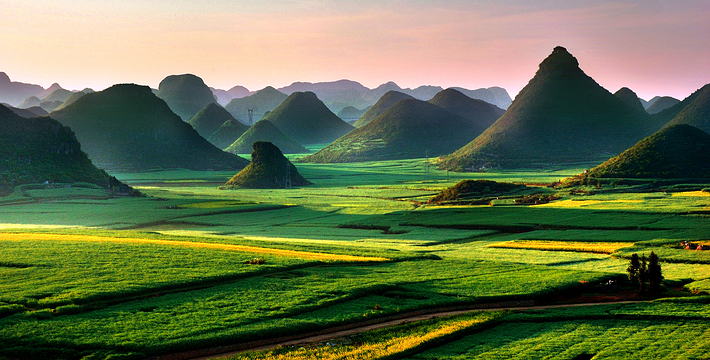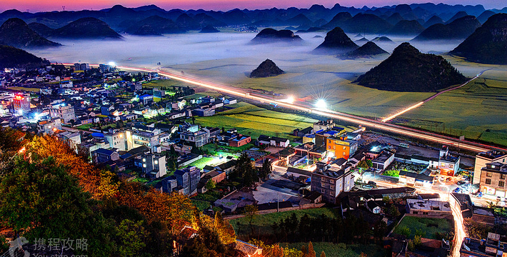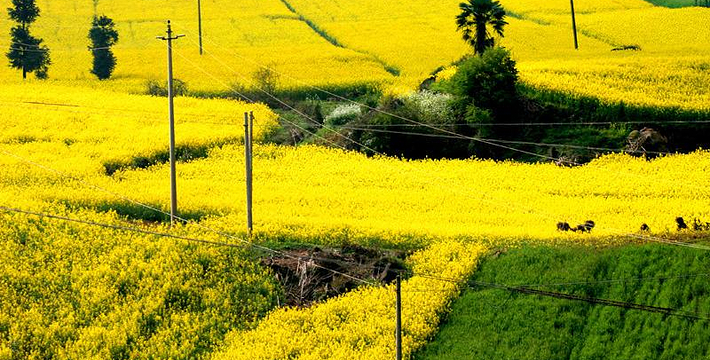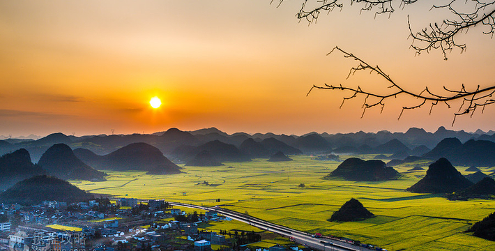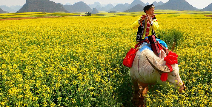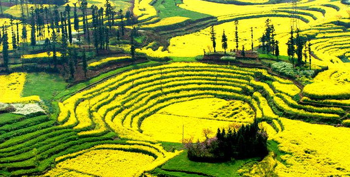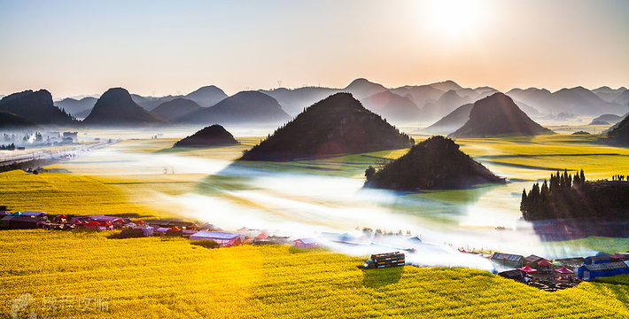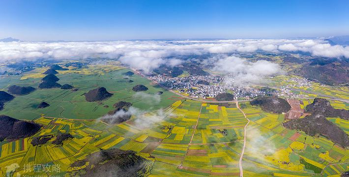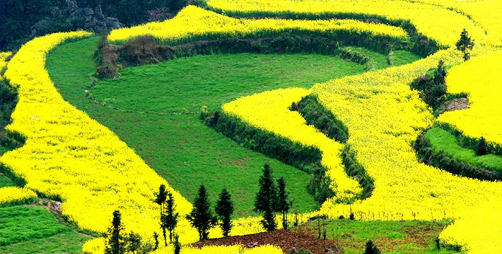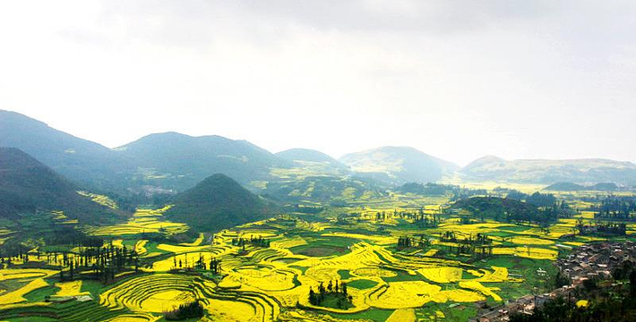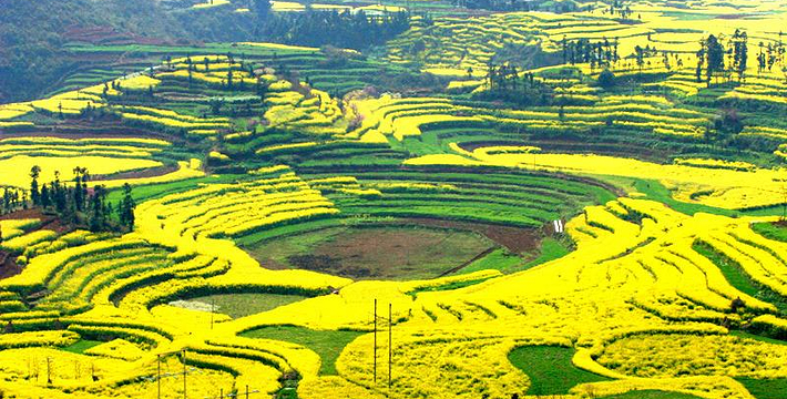罗平独特的气候,造就了罗平独特的生态农业。每年2至3月,连片的80万亩油菜花在罗平坝子竞相怒放、流金溢彩,绵延数十里,好似金浪滔滔的海洋,无不感叹罗平是“金玉满堂之乡”。324国道、南昆铁路从花海中横贯而过,有“中国吉普赛人”之称的养蜂人,聚在花海之中,放蜂追花采蜜。此起彼伏的喀斯特锥形山,点缀花海中,有如人间仙景,构成绝妙的图画;牛街石岩溶洼地,是喀斯特岩溶中的一种典型地貌,呈现出别致的“千丘田”田园风光;一年一度的油菜花旅游节,向海内外游客发出春天的邀请,吸引了无数海内外朋友到罗平观花、尝鲜蜜。2002年(油菜种植园)”称号;2004年4月被国家旅游局评为“首批全国工农业旅游示范点”;2005年”。2006年4月,罗平油菜花文化旅游节被评为“2005中国节庆50强”,2007年油菜花文化旅游节被评为云南“2006”。
