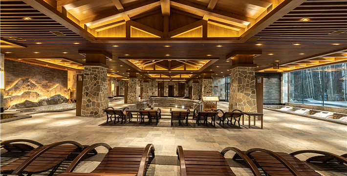 室内水疗区为你提供多种水疗,你可以一边感受水的按摩,一边欣赏窗外的风景。