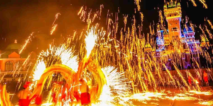 水漫金山融汇灾难模拟,水幕电影、天幕表演等众多国际领先的高科技表现形式,演绎中国传统民间故事——《白蛇传》里那段流传千年的壮美爱情传奇。