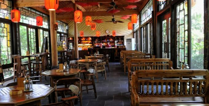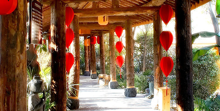 温泉茶艺坊里古色古香的木桌木椅、飘香的茶水,泡过温泉,可以来这里喝一杯茶,体会假日的恬淡与宁静。