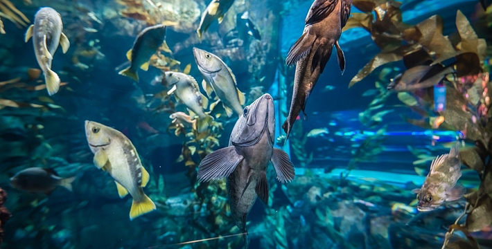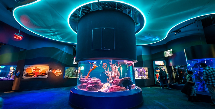 【加拿大多伦多瑞普利水族馆】1)水族馆位于加拿大多伦多市中心,就在著名的CN塔的东南方。2)它是2013年10月才正式修建完成的,是一个非常新的观光景点好去处。3)水族馆设置了来自世界各地的1.5万加仑的海洋水和淡水栖息地。4)水族馆分成九个长廊:加拿大水域,彩虹礁,危险的泻湖,探索中心,画廊,雷湾,星球水母,生命支持系统和海岸线画廊,它是16,000只生物的家园。5)加拿大水域展馆展示了加拿大周围水域特色生物。6)画廊展馆包含17块栖息地,展览有:灰西鲱,大口黑鲈,美国龙虾,狼鳗,块状的鱼,巨大的太平洋章鱼,中国石斑鱼等。