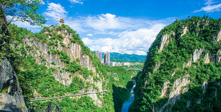 沿着透明玻璃栈道在峡谷中穿行,体验横跨七个地质年代、垂直落差达500米的峡谷震撼;在高达123米的巨幅摩崖观音像前,感受回音壁带来的神奇。城市中的大峡谷、城市下的溶洞群、城市旁的阿蓬江,构筑大武陵惟一的极致峡谷体验、极奇峡谷景观、极美峡谷城市、极叹峡谷文化的奇幻景区。