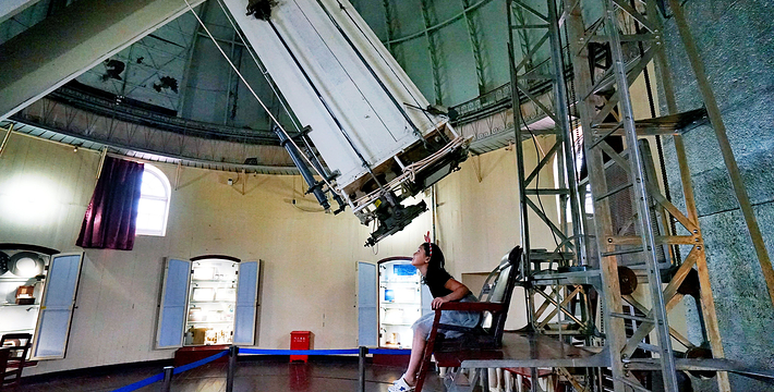 上海天文博物馆位于松江西佘山山顶(进西佘山园免费),其前身为法国天主教传教士建立于1900年的佘山天文台。博物馆内展示了天文望远镜和我国天文科学的发展历程,陈列着多种天文科学设备,其中尤以“镇馆之宝”——拥有百年历史的40厘米双筒折射望远镜十分著名。