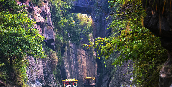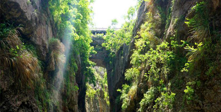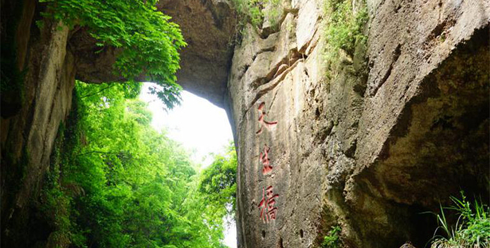 南京天生桥景区位于宁高高速公路西侧,素有秦淮源头之称的溧水县城城西3公里起处,距南京禄口国际机场18公里,重岗叠岚,草木茂盛,风景优美,是南京郊县旅游胜地,金陵新四十八景之——凝脂沉霞。目前整个景区占地1.27平方公里,分为四大部分:胭脂河——天生桥景区、凤凰井景区、幽谷山庄休闲度假区、旅游服务区。胭脂河是朱元璋为沟通江浙漕运而开凿的一条著名的人工运河,1393年,朱元璋派崇山侯李新到溧水“督视有司开凿胭脂河”。天生桥闻名遐尔、国内堪称一奇、举世无双的一座石桥,是金陵新四十八景之一。凤凰井景区,有着神话般的传说,山清水秀,鸟语花香,建有多个动物园,游乐项目,其生态环境堪称大自然提供给人们的天然氧吧。在这里可以聆听到胭脂河动人的传说,可以欣赏到小三峡的险峻、陡峭、秀丽、幽深。在观赏完自然界的鬼斧神工外,还可以在格调清新、设施完善、典雅、文化氛围突出的农家乐休闲,品尝地方风味浓郁的本地菜肴,购一些诸如御带糕、竹笋、青梅等特色的旅游产品。