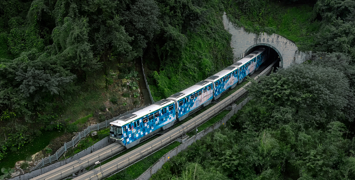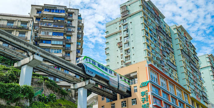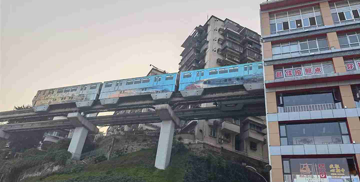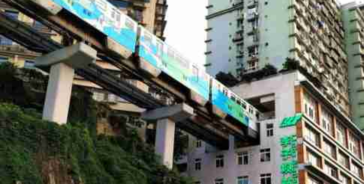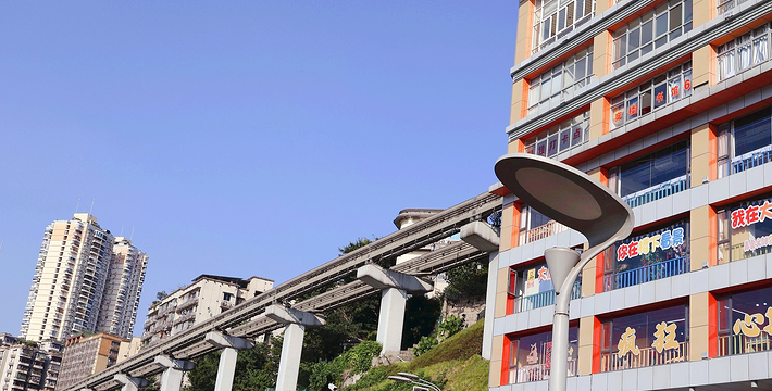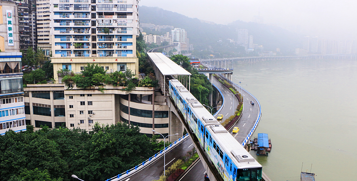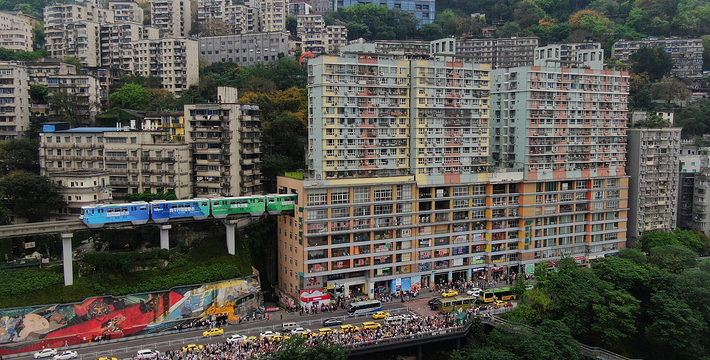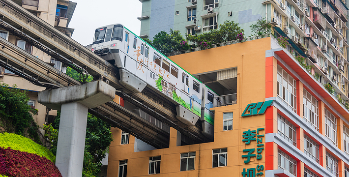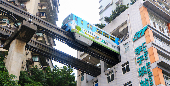 李子坝站是重庆轨道交通2号线全线独一个的楼中站
