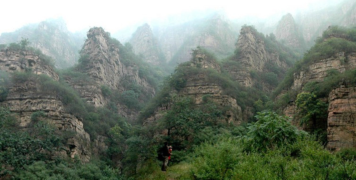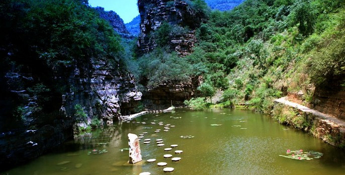 睡莲池,池内种植睡莲而得名,传说中仙女沐浴的地方。周边几座山峰,巨石嶙峋,好似神态各异的雄鹰,左顾右盼,虎视眈眈,故曰“神鹰护潭”。