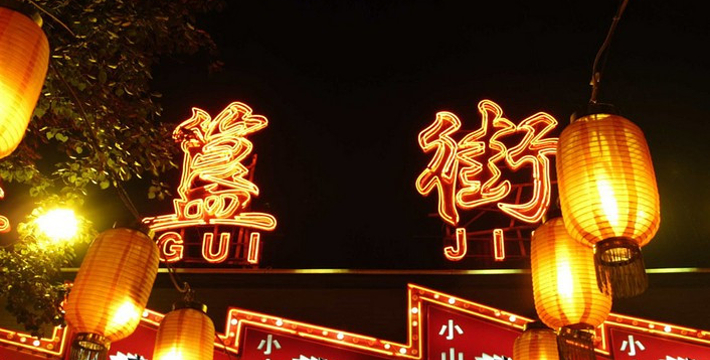 簋街(鬼街),是北京老百姓对东城区东直门内餐饮一条街的称呼,东起二环路东直门立交桥西端,西到交道口东大街东端。周围使馆林立,造就了簋街得天独厚的地理优势,每年仅外宾为簋街创造的利润就高达3500万元。在这条全长1442米的东内大街上,沿街共有各种商业店铺150多家,其中餐饮服务业148家,约占东内大街全部店铺的90%以上。饭馆密度如此之大,全北京恐怕再也找不出第二家了。关于簋街(鬼街)名字的由来,目前有很多不同的版本,但都是空穴来风或道听途说,而真正的说法只有那些东直门内居住的老北京人可以解释清楚。清朝年间北京市的各个城门都有专门的用途,不得随意使用,就象朝廷出兵必须要走德胜门,而收兵要走永定门、处决罪犯必须要走宣武门一样,东直门只是专门做为往城里运送木材和往城外运送死人的城门,在城边上那些世代居住的50岁左右的人们至今还清楚的记得小的时候大家一起呼朋唤友的结伴到城门楼上玩耍的情景,站在城楼上看城里是一条笔直的土路能看到鼓楼,而城外就是一望无际的坟场。由于城门即当时的城乡结合部,那些以贩卖杂货菜果为主的摊贩们后半夜开市,黎明即散,摊主以煤油灯取亮,远处看上去灯影憧憧,再加上整条街上比肩相邻的棺材铺和杠房,故名“鬼市”。而巧合的是市场大潮开始后东直门大街两侧的很多商家店铺也做过很多各种各样的生意,可没有一家能做的好的(即后来的金鼎轩旧址)也不得不关门歇业了,但随后人们发现在这条街上只有开饭馆能做的好,而且这里的饭馆白天几乎没有人光顾,但是到了晚上却门庭若市车水马龙另有一番繁荣景象。至于是不是象当地老人们说的到了夜里鬼们都要进城吃饭而形成了如此繁荣就谁也解释不清了。由于热市的形成,鬼街已经在北京家喻户晓,当然很多人也看到了这里巨大的商机,就连当地政府也是从开始的排斥强管到了后来的扶持,区商委还把这里命名为“东内餐饮一条街”。但是,鬼字终究不雅,于是东城区委的能人们就冥思苦想的要为鬼街易名,但是老板们并不买帐因为怕易名坏了风水,说来也是该着,竟有人发现了字典里有这个音同字不同的“簋”并且还能和吃沾上边,于是开始大肆宣传并且还在东直门立交桥鬼街一侧的桥头做了一个“簋”的大铜塑像,于是就有了现在这个文明的“簋街”。