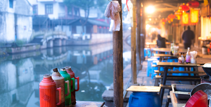 古街上有好几家小酒馆,家家都是原味的地方。清晨,还可以到老茶馆里,那里的茴香豆和碗茶,毡帽和绍兴方言会让你置身鲁迅的阿Q时空。