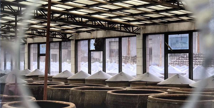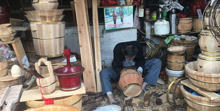 镇上的酒店卖的是一弯弯腊肠,以及陈列着的小小黄酒坛。比较受欢迎的是镇上的宝麟酒店。
