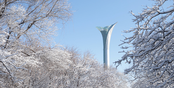 形状如百合花盛开的黛青色高塔笔直地冲上蓝天,顶端弯开呈喇叭状,气势恢弘,格外壮观雄伟。百合塔高125米,寓意百业兴盛,和谐发展。