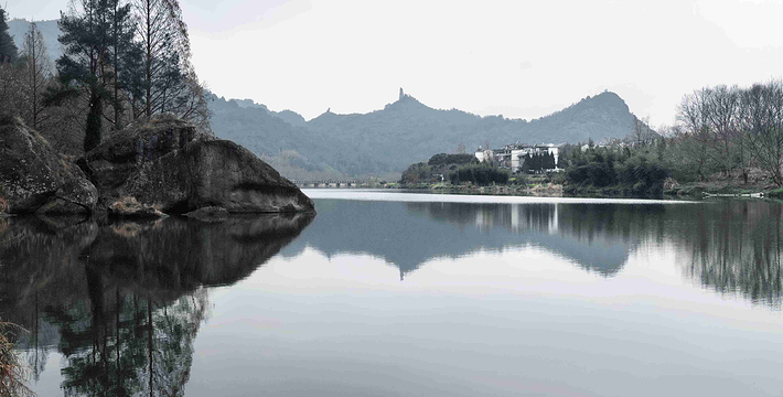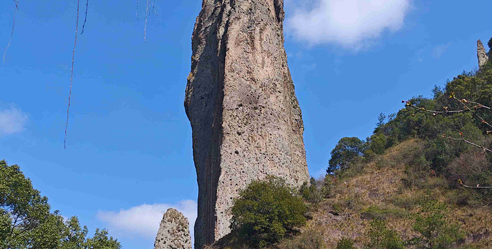 鼎湖峰景点是整个风景名胜区的核心。它东靠步虚山,西临练溪水,状如春笋拔地而起,直插云霄,高约160余米。