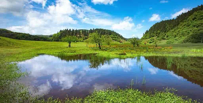 仙女山有镶嵌在山林之间如碧玉翡翠般的辽阔草原,野花似锦,延绵天际,牛羊徜徉其间,如诗如画。