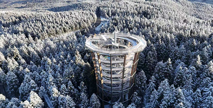 仙女山国家森林公园是国家AAAAA级景区,位于重庆市武隆县境,占地面积100平方公里,平均海拔1900米2033米,以其江南独具魅力的高山草原、南国罕见的林海雪原、青幽秀美的丛林碧野景观而誉为“东方瑞士”,她与神奇的芙蓉洞、秀美的芙蓉江。 冬季的仙女山白雪皑皑,银妆纱裹,雾松、冰瀑令人情潮涌动,此时成为重庆周边观赏雪景、开展雪上运动的绝佳旅游胜地;夏季茫茫林海,清风吹拂,凉爽宜人,仙女山平均气温比重庆主城区低15度,由此又享有“山城夏宫”之美誉。仙女山的林海、奇峰、草场、雪原被游客称为四绝。登峰远眺,起伏而又不失平坦;万峰林海,苍翠欲滴;镶嵌在山林之间的辽阔草场,野花似锦、延绵天际、牛羊荡漾其间,如诗如画;山峰、山谷、森林与草原浑然一体,交相辉映。仙女山现有景点50余处,现已开发20余处,主要景点有:狮子岩、仙女石、侯家山庄、九把斧、四川省工农红军第二路游击队政治部旧址、林海、草场、度假村、帐篷村、野味火锅城、猎人村等。通天塔观日出和云海,仙女池垂钓,巴人村探幽,原始森林观野生动物,菩萨坨拜佛,冬季滑雪赏雪。林海雪原、烟波皓渺,奇峰险关构成一幅精美绝伦的人文景观。
