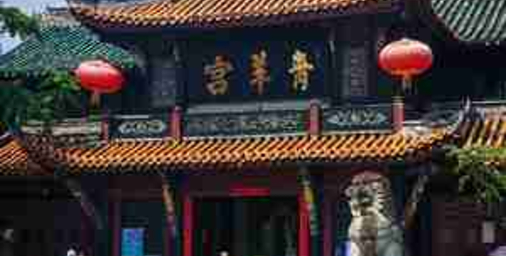 青羊宫坐落在成都西南郊,南面百花潭、武侯祠(汉昭烈庙),西望杜甫草堂,东邻二仙庵。相传宫观始于周,初名“青羊肆”。据考证,三国之际取名“青羊观”。到了唐代改名“玄中观”,在唐僖宗时又改“观”为“宫”。五代时改称“青羊观”,宋代又复名为“青羊宫”,直至今日。